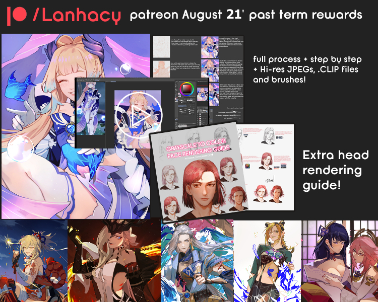 high-Res jpeg + .clip studio files + brushes + full video process + step by step + head rendering guide
